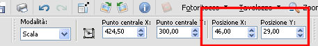 e imposta Posizione X: 46,00 e Posizione Y: 29,00.