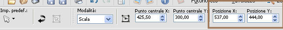 e imposta Posizione X: 537,00 e Posizione Y: 444,00.