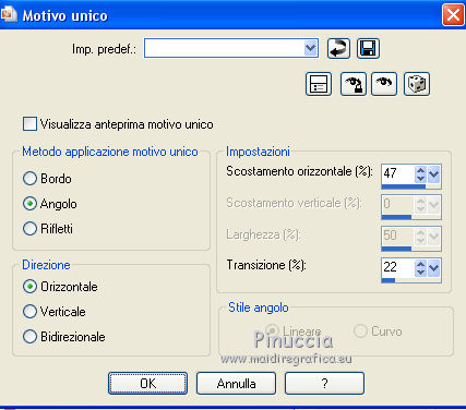 13. Effetti>Effetti di immagine>Motivo unico, con i settaggi standard.