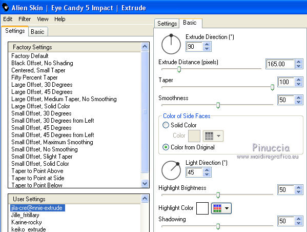 38. Effets>Modules Externes>Alien Skin Eye Candy 5 Impact - Extrude.