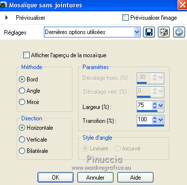 5. Effets>Effets d'image>Mosaïque sans jointures, par défaut.
