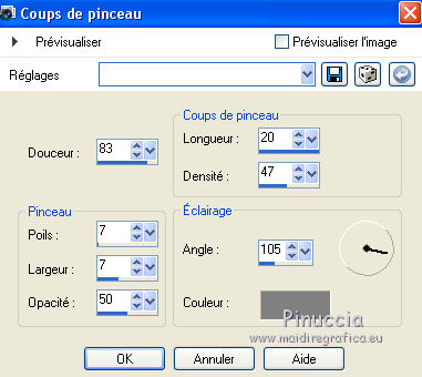 18. Effets>Effets de traits>Coups de pinceau, couleur #808080.