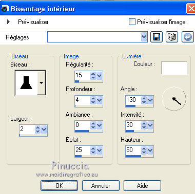 21. Effets>Effets 3D>Biseautage intérieur, comme précédemment.