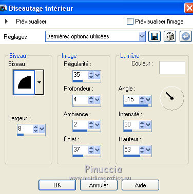 39. Effets>Effets 3D>Biseautage intérieur, comme précédemment.