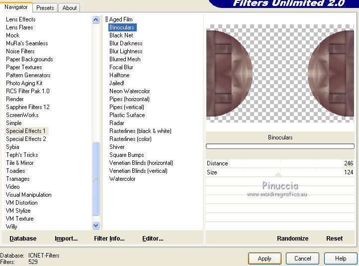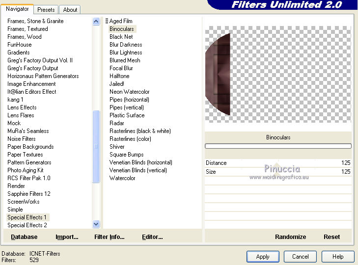 Effets>Modules Externes>Filters Unlimited 2.0 - Special Effects 1 - Binoculars.