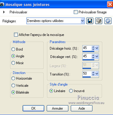 26. Effets>Effets d'image>Mosaïque sans jointures, par défaut.