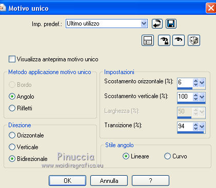 Effetti>Effetti di immagine>Motivo unico, con i settaggi precedenti.