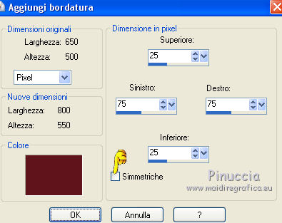 Immagine>Aggiungi bordatura, simmetriche non selezionato, con i settaggi precedenti.