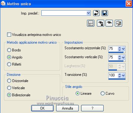Effetti>Effetti di immagine>Motivo unico, con i settaggi precedenti.