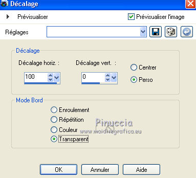 et placer Position horiz.: 0,00 et Position vert.: 5,00.