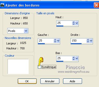 Image>Ajouter des bordures, symétrique décoché, couleur d'avant plan.