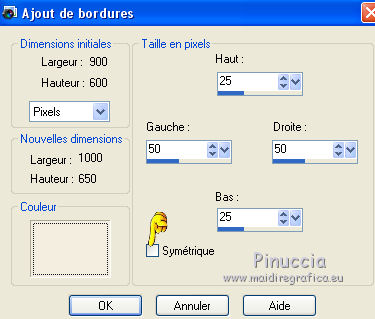 50. Image>Ajouter des bordures, 25 pixels, symétrique, couleur d'avant plan.