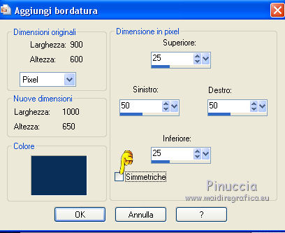 Immagine>Aggiungi bordatura, simmetriche non selezionato con i settaggi precedenti.