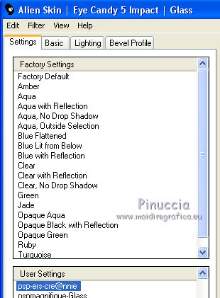 Metti il preset nella cartella del filtro Alien Skin Eye Candy 5 Impact>Settings>Glass.