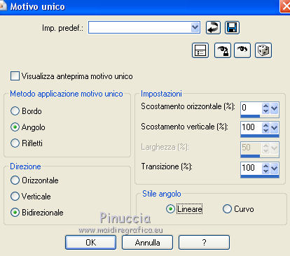 5. Effetti>Effetti di immagine>Motivo unico, Fianco a fianco.