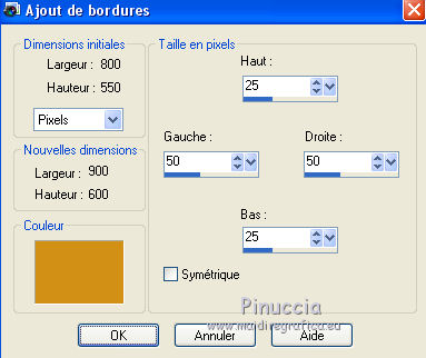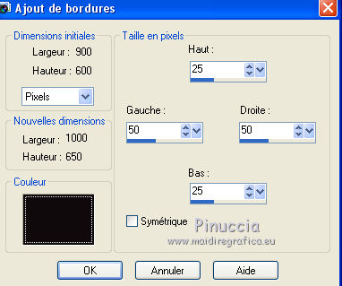 6. Image>Ajouter des bordures, symétrique décoché, couleur d'arrière plan.