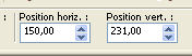 et placer Position horiz.: 150,00 et Position vert.: 231,00.
