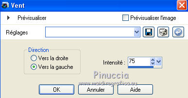 Effets>Effets de distorsion>Vent, vers la gauche, intensité 75.