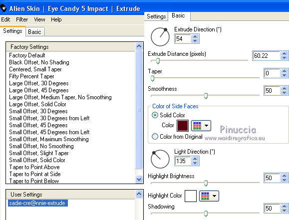 13. Effetti>Plugins>Alien Skin Eye Candy 5 Impact - Extrude.