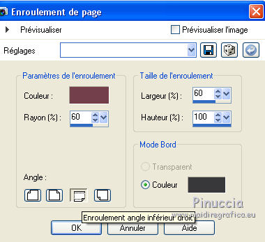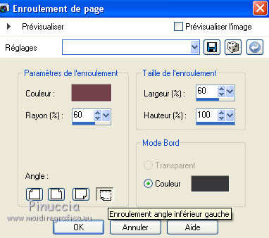 Répéter Enroulement de page, mais Enroulement angle inférieur gauche coché.