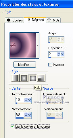 9. Changer les réglages du Dégradé, style Rectangulaire.