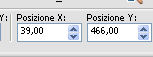 e imposta Posizione X: 39,00 e Posizione Y: 466,00.