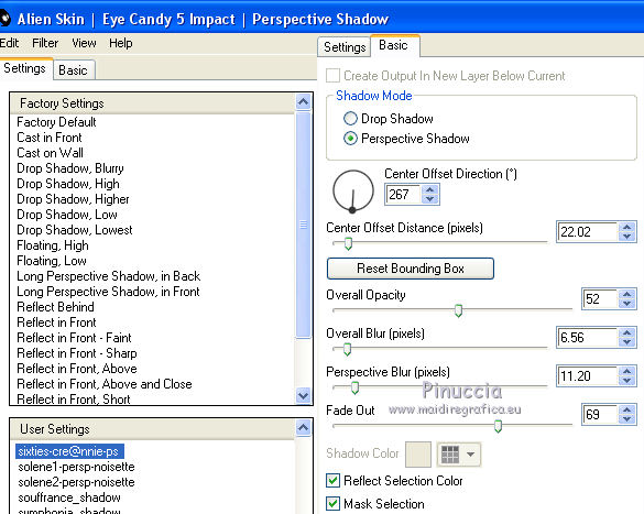 53. Effetti>Plugins>Alien Skin Eye Candy 5 Impact - Perspective Shadow, con i settaggi precedenti.