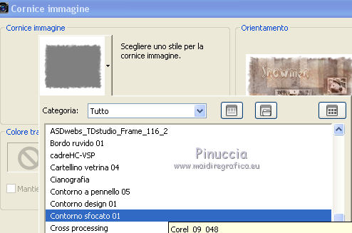La cornice immagine Corel_09_048 è standard in PSP e corrisponde alla cornice Contorno sfocato01.