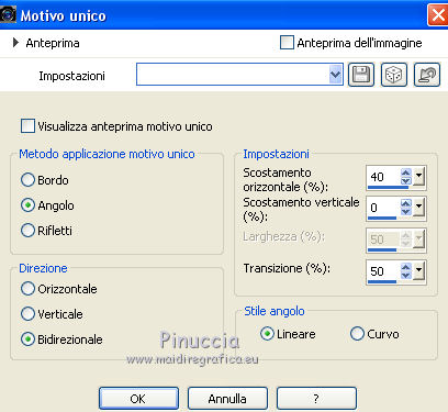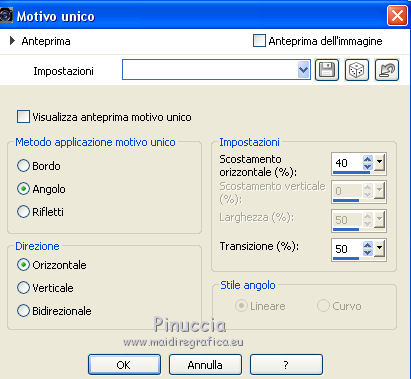 14. Ripeti Effetti>Effetti di immagine>Motivo unico, con i settaggi precedenti, ma orizzontale selezionato.