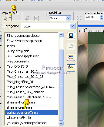 apri il menu delle impostazioni e seleziona il preset springfever-cre@nnie