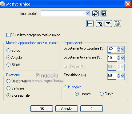 Effetti>Effetti di immagine>Motivo unico, con i settaggi precedenti.