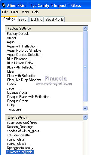 32. Effetti>Plugins>Alien Skin Eye Candy 5 Impact - Glass, con i settaggi precedenti.