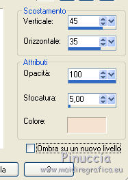 Effetti>Effetti 3D>Sfalsa ombra, colore nero, ombra su nuovo livello non selezionato.
