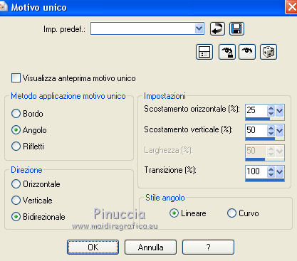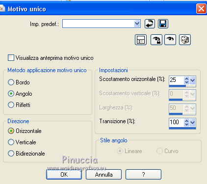 31. Effetti>Effetti di immagine>Motivo unico, con i settaggi precedenti, ma Orizzontale selezionato.