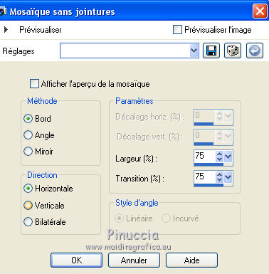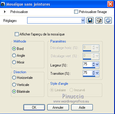 4. Effets>Effets d'image>Mosaïque sans jointures, par défaut.