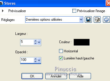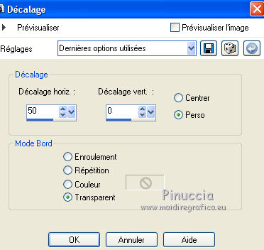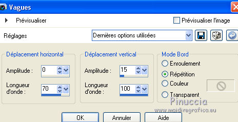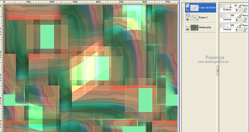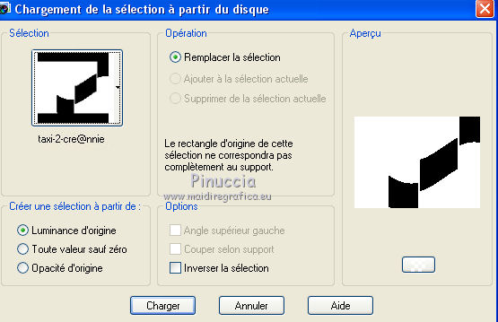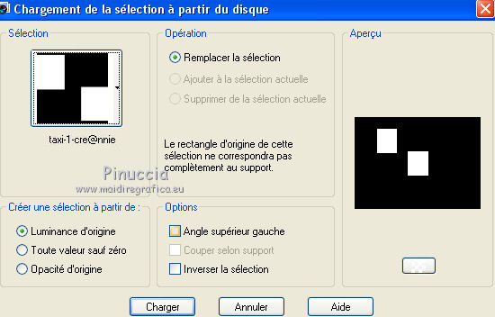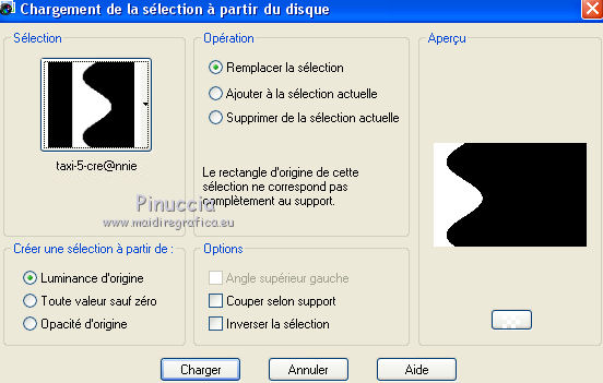 Ce tutoriel a été créé avec CorelX6 et traduit avec CorelX12, mais peut également être exécuté avec les autres versions. Suivant la version utilisée, vous pouvez obtenir des résultats différents. Depuis la version X4, la fonction Image>Miroir a été remplacée par Image>Renverser horizontalement, et Image>Renverser avec Image>Renverser verticalement. Dans les versions X5 et X6, les fonctions ont été améliorées par la mise à disposition du menu Objets. Avec la nouvelle version X7, nous avons encore Image>Miroir et Image>Renverser/Retourner, mais avec nouvelles différences. Voir les détails à ce sujet ici Certaines dénominations ont changées entre les versions de PSP. Les plus frequentes dénominations utilisées: ![]() Traduction en italien ici Vos versions ici Nécessaire pour réaliser ce tutoriel: Matériel ici Pour le tube merci AnaRidzi Modules Externes: consulter, si nécessaire, ma section des filtres ici Filters Unlimited 2.0 ici AAA Frames - Foto Frame ici L&K's - Zitah ici Toadies ici VM Distortion ici Filtres Toadies et VM Distortion peuvent être utilisés seuls ou importés dans Filters Unlimited. voir comment le faire ici). Si un filtre est fourni avec cette icône, ![]() en fonction des couleurs utilisées, vous pouvez changer le mode mélange et l'opacité des calques. Dans les plus récentes versions de PSP, vous ne trouvez pas le dégradé d'avant plan/arrière plan ou Corel_06_029. Vous pouvez utiliser le dégradé des versions antérieures. Ici le dossier Dégradés de CorelX. Placer le preset Emboss 3 dans le dossier Paramètres par défaut. Placer le masque 20.20 dans le dossier Masques. Placer les sélections dans le dossier Sélections. 1. Placer en avant plan la couleur claire #81efa7, et en arrière plan la couleur foncée #ff5638. ![]() 2. Ouvrir une nouvelle image transparente 650 x 500 pixels, et remplir avec la couleur d'arrière plan.3. Sélections>Sélectionner tout. Ouvrir le tube AR617 - Édition>Copier. ne pas fermer le tube; on va s'en servir plus tard Revenir sur votre travail et Édition>Coller dans la sélection. Sélections>Désélectionner tout. 4. Effets>Effets d'image>Mosaïque sans jointures, par défaut. ![]() 5. Réglage>Flou>Flou radial. ![]() 6. Effets>Modules Externes>VM Distortion - Smallpox. ![]() 7. Activer l'outil Sélection ![]() (peu importe le type de sélection, parce que avec la sélection personnalisée vous obtenez toujours un rectangle), cliquer sur Sélection personnalisée ![]() et setter ces paramètres. ![]() Sélections>Transformer la sélection en calque. Sélections>Désélectionner tout. 8. Effets>Modules Externes>VM Distortion - Tilomat 2000. ![]() 9. Effets>Effets 3D>Ombre portée, couleur noire. ![]() 10. Calques>Dupliquer. Image>Miroir. Image>Renverser. 11. Calques>Fusionner>Tous. 12. Calques>Dupliquer. Image>Redimensionner, à 80%, redimensionner tous les calques décoché. Image>Renverser. 13. Sélections>Sélectionner tout. Sélections>Flottante. Sélections>Modifier>Sélectionner les bordures de la sélection. ![]() Remplir la sélection avec la couleur d'avant plan.Sélections>Désélectionner tout. 14. Effets>Effets d'image>Mosaïque sans jointures. ![]() 15. Effets>Effets de distorsion>Bombage ![]() 16. Image>Ajouter des bordures, symétrique décoché, couleur d'avant plan. ![]() 17. Effets>Effets d'image>Mosaïque sans jointures. ![]() 18. Calques>Nouveau calque raster. Sélections>Charger/Enregistrer une sélection>Charger à partir du disque. Chercher et charger la sélection Taxi-1-cre@annie. ![]() Remplir la sélection avec la couleur d'avant plan.Sélections>Désélectionner tout. 19. Effets>Modules Externes>Toadies - What are you. ![]() Effets>Effets de bords>Accentuer davantage. 20. Calques>Dupliquer. Image>Miroir. Image>Renverser. 21. Effets>Effets d'image>Décalage. ![]() Calques>Fusionner>Fusionner le calque de dessous. 22. Calques>Dupliquer. Effets>Effets de distorsion>Vagues. ![]() 23. Image>Miroir. Placer le calque en mode Éclaircir et réduire l'opacité à 60%. ![]() 24. Effets>Effets d'image>Décalage. ![]() 25. Effets>Effets de textures>Stores - couleur noire. ![]() 26. Sélections>Charger/Enregistrer une sélection>Charger à partir du disque. Chercher et charger la sélection Taxi-2-cre@annie. ![]() 27. Vous positionner sur le calque du bas de la pile. Effets>Modules Externes>L&K's landksiteofwonders - L&K's Zitah. ![]() 28. Sélections>Charger/Enregistrer une sélection>Charger à partir du disque. Chercher et charger la sélection Taxi-3-cre@annie. ![]() 29. Calques>Nouveau calque raster. Effets>Effets 3D>Ombre portée, couleur noire. ![]() Sélections>Désélectionner tout. 30. Calques>Dupliquer. Effets>Effets d'image>Décalage, comme précédemment. 31. Image>Miroir. Calques>Fusionner>Tous. 32. Édition>Copier. 33. Sélections>Sélectionner tout. Image>Ajouter des bordures, symétrique décoché - couleur d'arrière plan. ![]() 34. Calques>Nouveau calque raster. Effets>Effets 3D>Ombre portée, couleur noire. ![]() 35. Vous positionner sur le calque du bas de la pile. Sélections>Inverser. Édition>Coller dans la sélection. 36. Effets>Modules Externes>AAA Frames - Foto Frame. ![]() 37. Sélections>Transformer la sélection en calque. Image>Renverser. Sélections>Désélectionner tout. Réduire l'opacité de ce calque à 50%. 38. Calques>Nouveau calque raster. Sélections>Charger/Enregistrer une sélection>Charger à partir du disque. Chercher et charger la sélection Taxi-4-cre@annie. ![]() 39. Ouvrir le tube winkel - Édition>Copier. Revenir sur votre travail et Édition>Coller dans la sélection. 40. Effets>Filtre personnalisé - sélectionner le preset Emboss 3 et ok. ![]() 41. Placer le calque en mode Lumière douce et réduire l'opacité à 65%. 42. Calques>Nouveau calque raster. Sélections>Charger/Enregistrer une sélection>Charger à partir du disque. Chercher et charger la sélection Taxi-5-cre@annie. ![]() Remplir la sélection avec la couleur d'arrièr