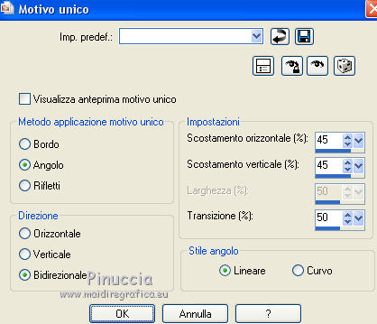 43. Effetti>Effetti di immagine>Motivo unico, con i settaggi precedenti.