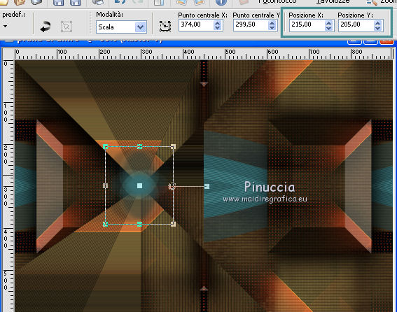 e imposta Posizione X: 215,00 e Posizione Y: 205,00.