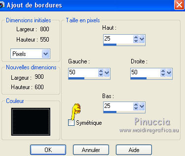 Image>Ajouter des bordures, symétrique décoché, couleur d'arrière plan.