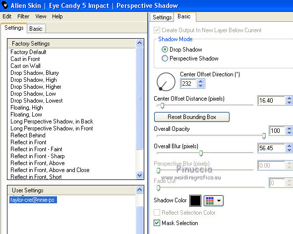 23. Effets>Modules Externes>Alien Skin Eye Candy 5 Impact - Perspective Shadow.