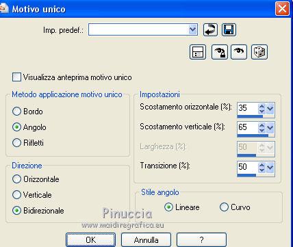 11. Effetti>Effetti di immagine>Motivo unico, con i settaggi precedenti.