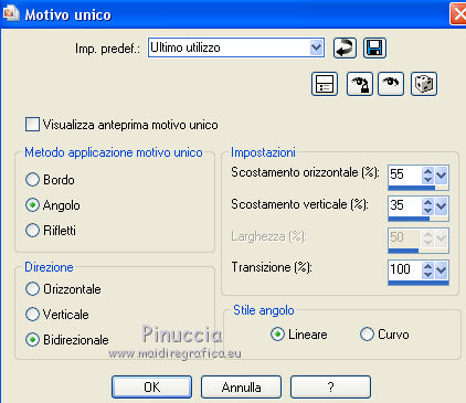 40. Effetti>Effetti di immagine>Motivo unico, con i settaggi precedenti.