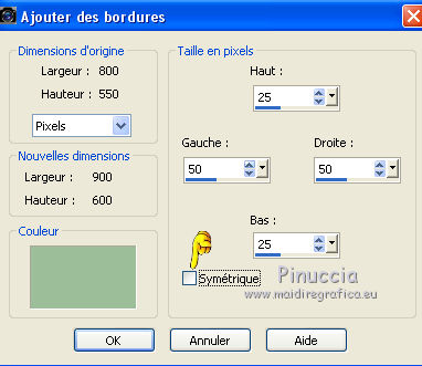 21. Image>Ajouter des bordures, 25 pixels, symétrique décoché, couleur d'avant plan.