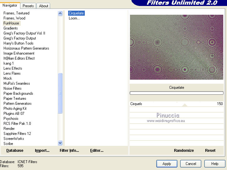 14. Effets>Modules Externes>Filters Unlimited 2.0 - Funhouse - Cirquelate