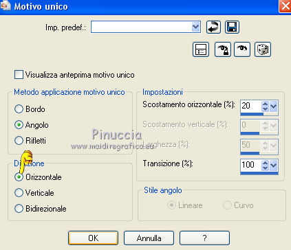 Effetti>Effetti di immagine>Motivo unico, con i settaggi precedenti, ma orizzontale selezionato.