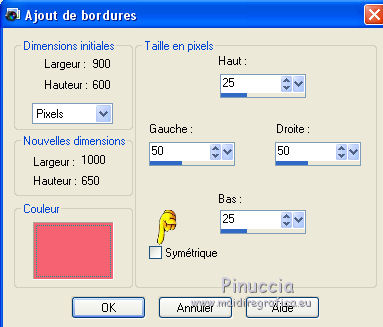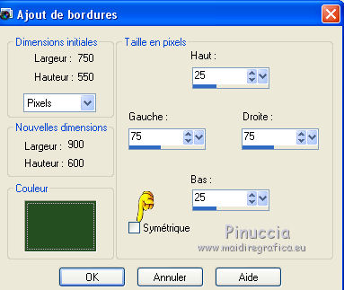 6. Image>Ajouter des bordures, symétrique décoché, couleur d'avant plan.