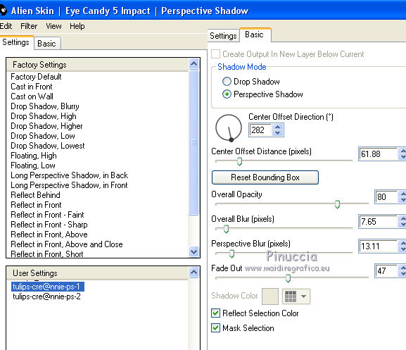 60. Effets>Modules Externes>Alien Skin Eye Candy 5 Impact - Perspective Shadow.