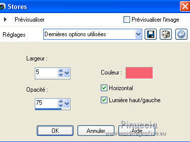37. Effets>Effets de textures>Stores, comme précédemment, mais couleur d'avant plan.