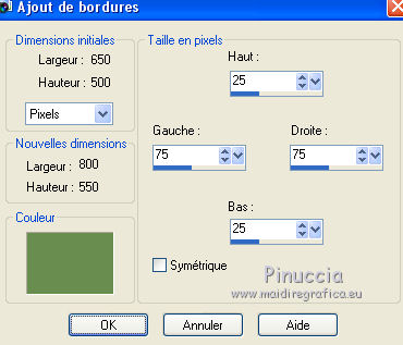 10. Image>Ajouter des bordures, symétrique décoché, couleur d'avant plan.