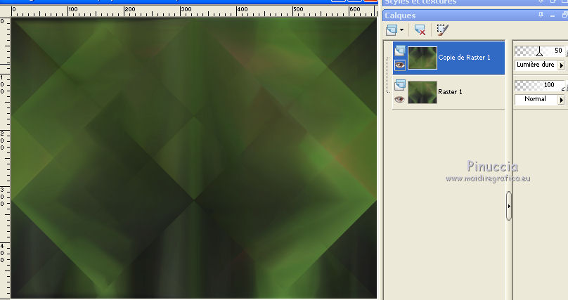 Placer le calque en mode Lumière dure et réduire l'opacité à 50%.